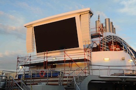 SYDNEY – The fitting of the giant 7-metre wide and 4-metre high LED movie screen is a key feature of a multi-million dollar refurbishment of Sun Princess now underway in Brisbane’s Forgacs Cairncross dockyard.
