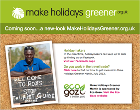 - Put a link from your website to http://www.makeholidaysgreener.org.uk – it is full of ideas, celebrity quotes and material you can download to use as part of your own marketing and communications (there is a downloadable banner on the site).