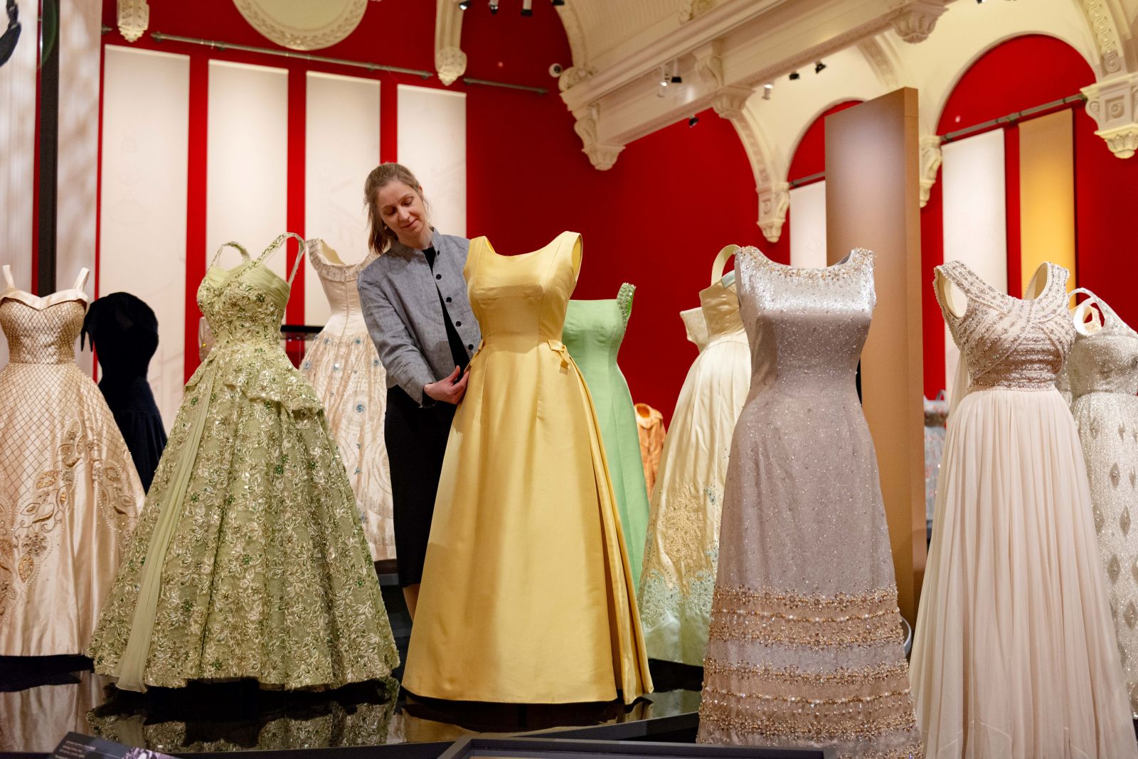 Throughout the exhibition, visitors gain unprecedented behind-the-scenes access to the process of dressing one of the world’s most famous women. Previously unseen archival materials—including fabric samples, and design sketches annotated in her own hand—reveal her close collaboration with couturiers.