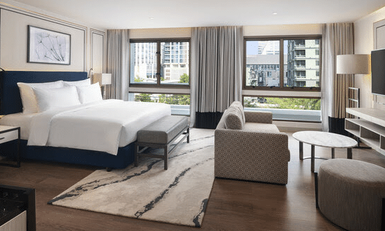 The hotel’s suites have kitchenettes providing convenience for long-stay guests.