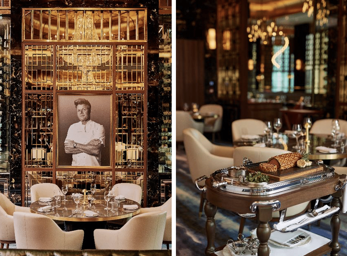 The menu is inspired by restaurant Savoy Grill, featuring Classic Beef Wellington and Spiced Beef Tartare with Egg Yolk Confit.