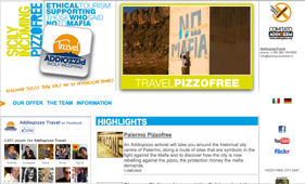 As a tourism branch of the ADDIOPIZZO movement "Goodbye pizzo" (protection money), founded in 2004, ADDIOPIZZO TRAVEL works to support those restaurants, hotels, lodges and agricultural businesses that have joined ADDIOPIZZO and refuse to pay the Mafia for "protection".