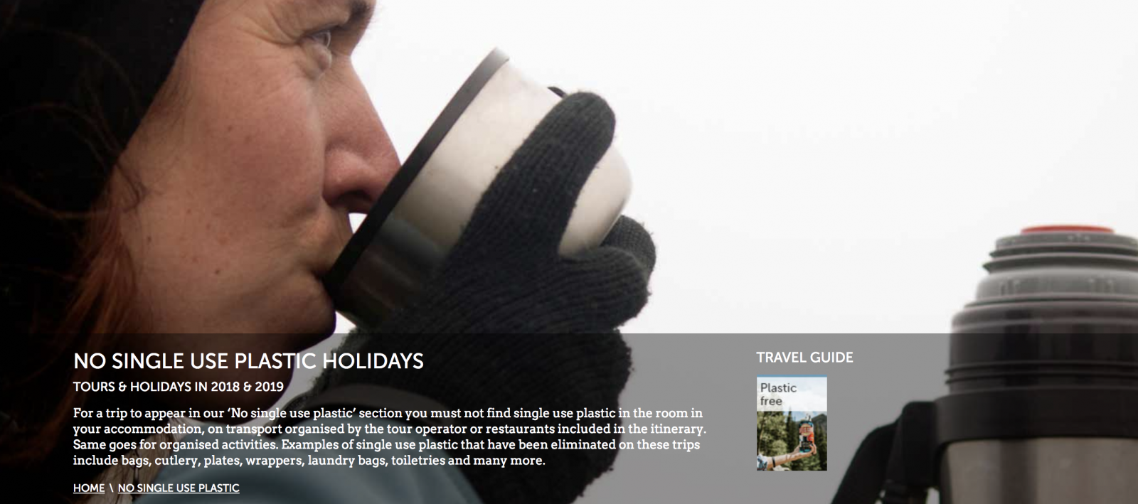For trips to make it into the section, customers must not encounter single use plastic at either the accommodation, the transport, organised activities, nor any restaurants that are part of the itinerary.