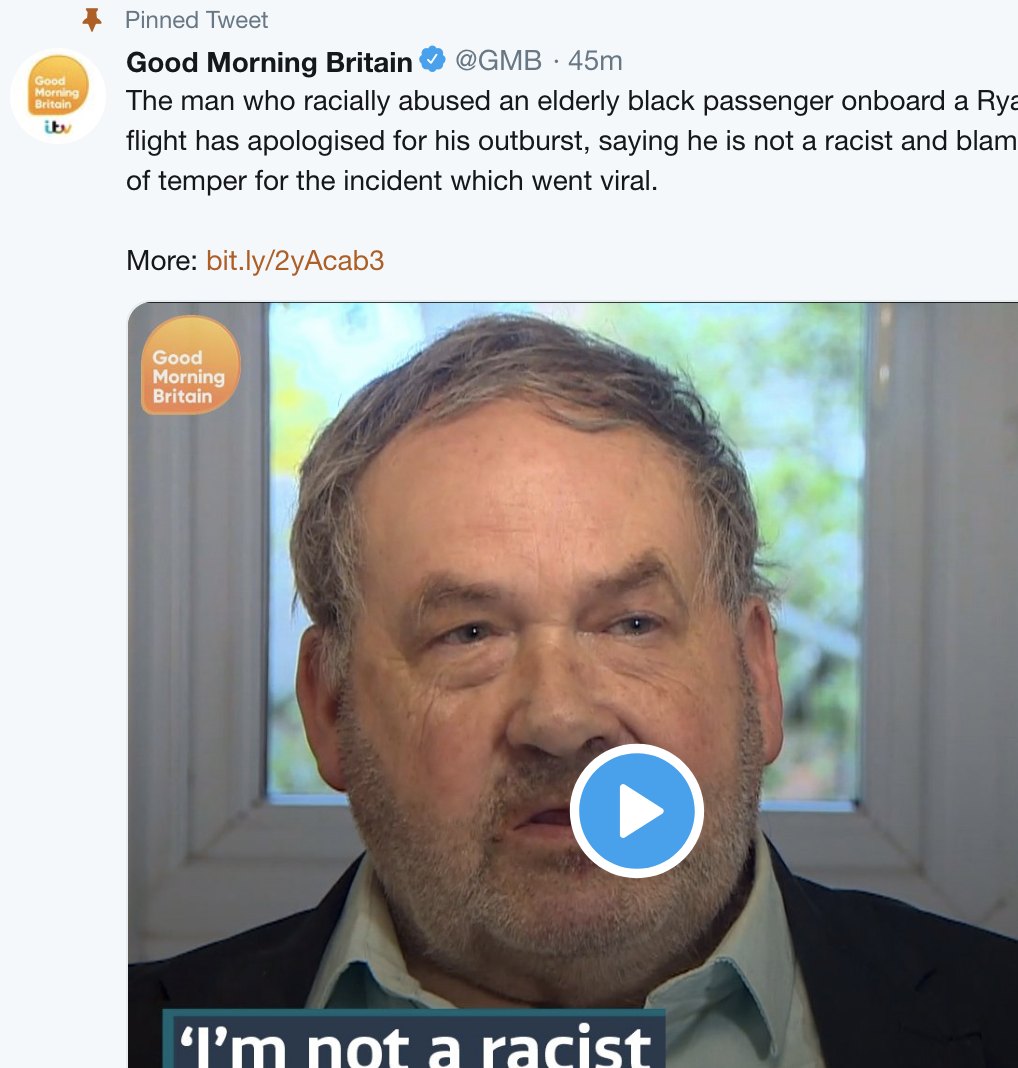 Ryanair said it had been made aware of the video of the on board incident late on Saturday and had reported it, and the racist abuse, to Essex police at 9am the following morning.