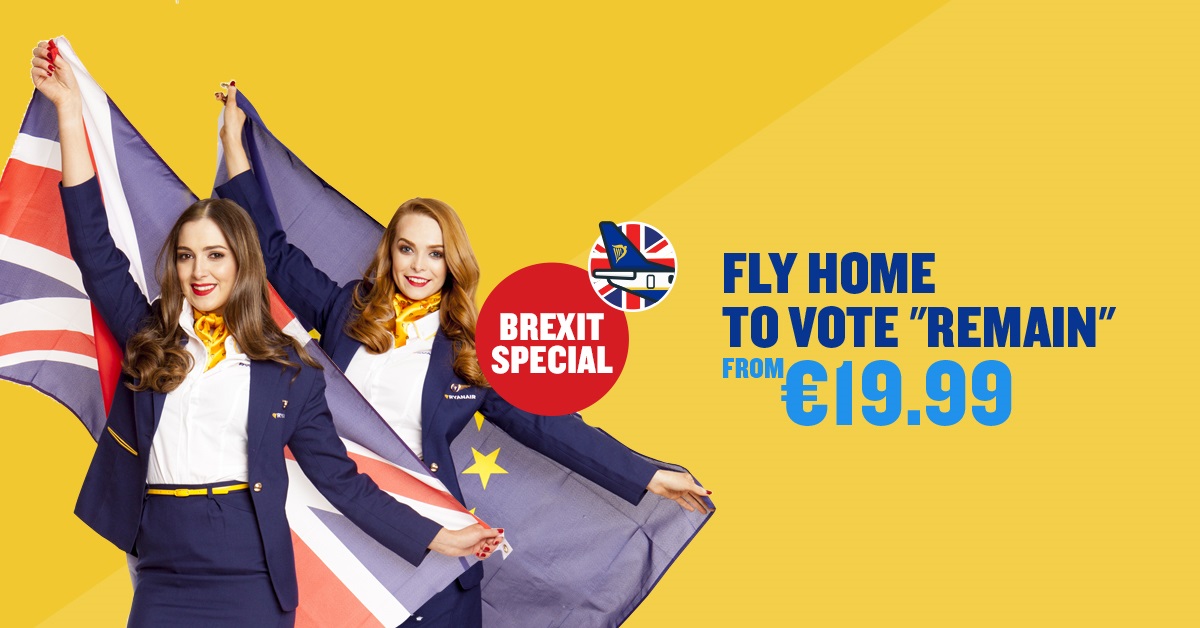Ryanair has launched a ‘Fly Home to Vote Remain’ seat sale to encourage Britons living overseas to come back for next month’s EU referendum.
