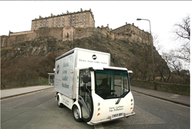 EAE’s green electric van outside Edinburgh Castle