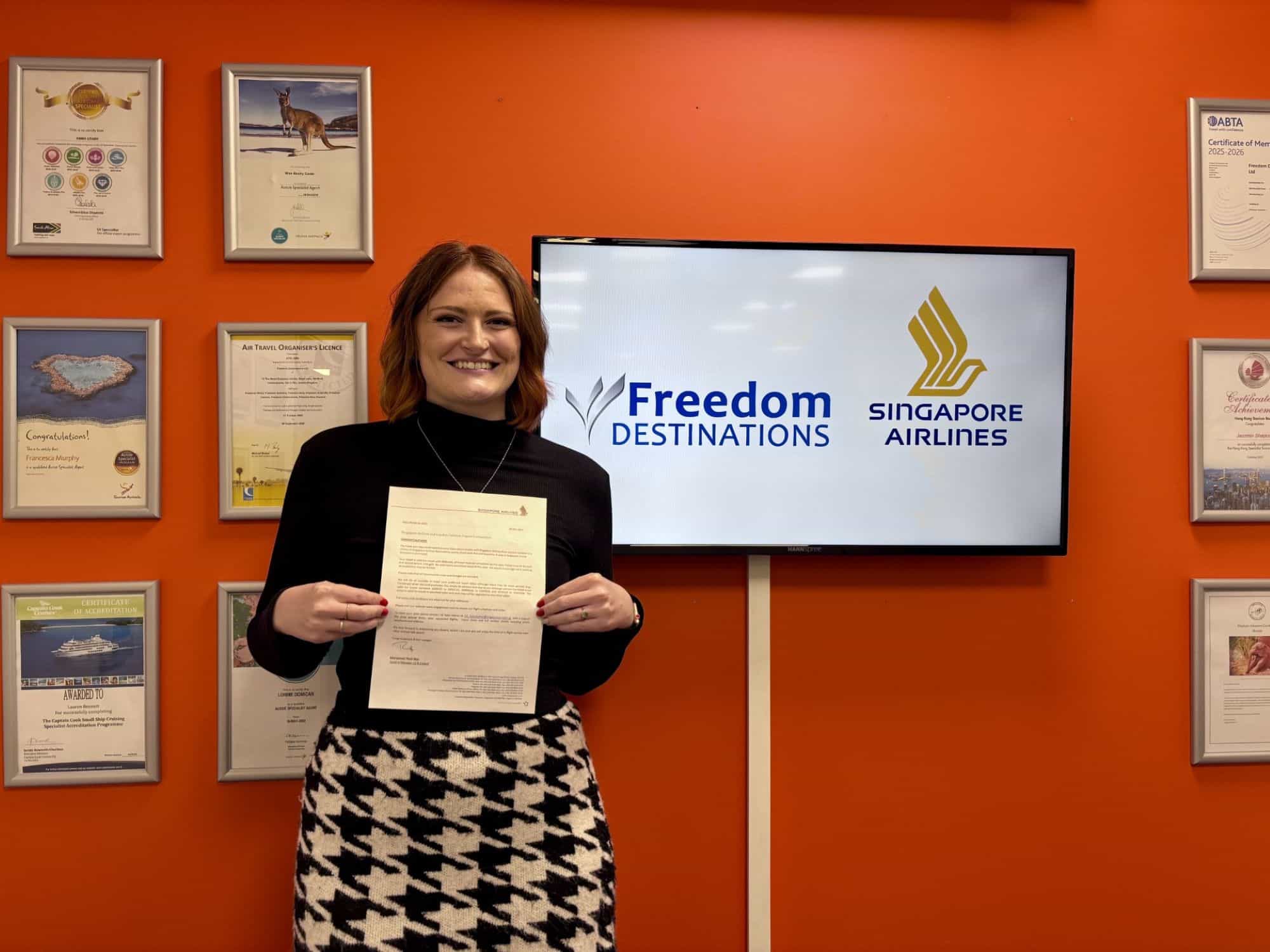 Jazzmin Shapcott (30 years old), an Asia Specialist at Freedom Destinations in Hertford, has been named the winner of the recent booking incentive competition by Singapore Airlines, organized in partnership with London Gatwick.