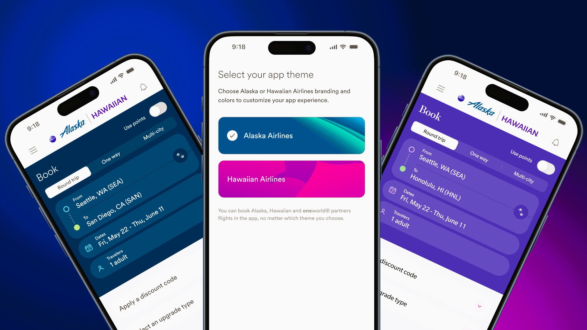 - One redesigned mobile app supports both Alaska Airlines and Hawaiian Airlines