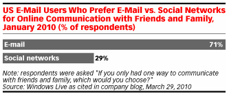 In March 2010, comparisons were drawn among the US users where it was found that almost 71% of the population prefers email in order to correspond with friends and family and only 21% prefers social networking sites to do the same.