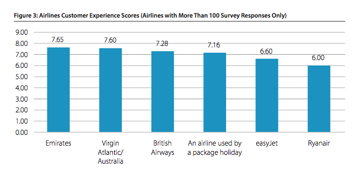 The survey, by data management provider Relay42 and EyeForTravel, asked respondents to rate up to three airlines they had used in the last 12 months on the level of customer service they had experienced with a score out of 10.
