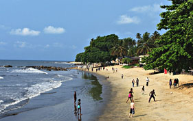 Kribi is a beach resort and sea port in Cameroon, lying on the Gulf of Guinea Coast, 170 km south of Cameroon’s largest city Douala. The Kribi area is particularly popular among domestic tourists from Douala and Yaounde, the two main cities of the country. Several interesting eco-tourism excursions can be made in the surrounding area of Kribi town, e.g. to the Campo Ma’an National Park, the Lobé waterfalls, the beach of Grand Batanga and pygmies’ settlements, although most tourism sites lack of organization. At present, large infrastructural and economic developments take place along the Kribi coastline, and there is a growing need for planning and undertaking protection measures in coastal zones in the area.