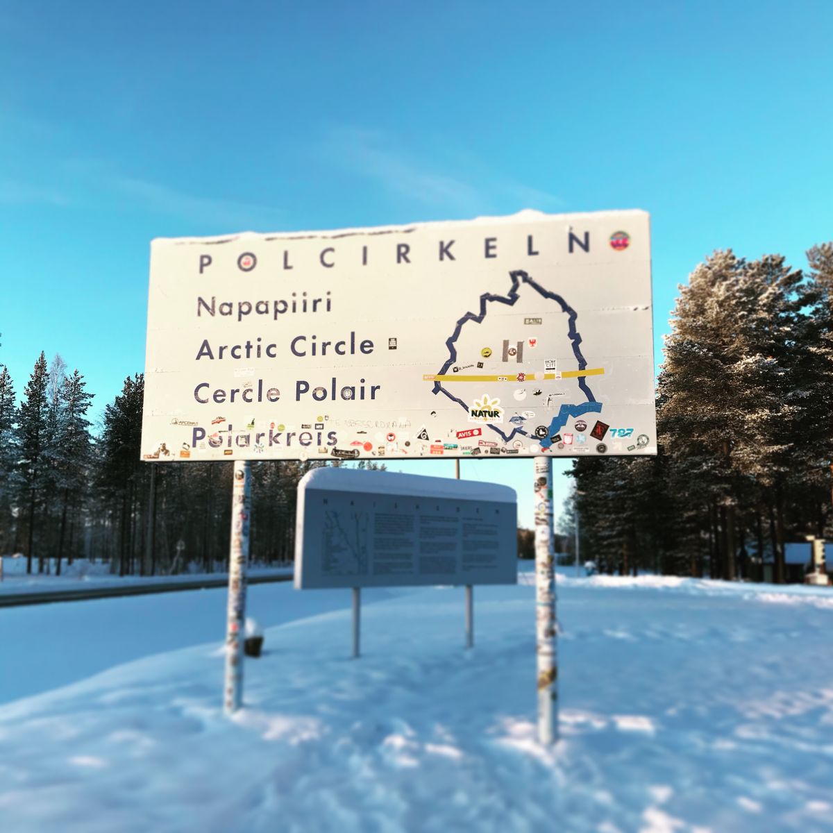 Even though we weren’t in our thermals, it seemed wrong not to brave the cold and stop the mini bus for a quick photo at the point where we crossed into the Arctic Circle. We were heading north to Kiruna, a town famous for its underground iron ore mine and also for being the home of the original Icehotel, which is actually just over 10 miles outside the town in Jukkasjarvi. Our four-hour drive took us past the most beautiful snow-covered landscapes of forests and frozen lakes, and we even spotted some reindeer on the edge of the forest.