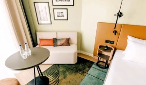 The hotel’s color palette draws from Tallinn’s Nordic light and coastal charm. It creates a sense of calm and clarity, ideal for both business and leisure travelers. With flexible social spaces and rooms to balance work and relaxation, the hotel meets the needs of today’s multifaceted travelers. Rooms have walk-in showers and a Cozy Corner to relax or work.
