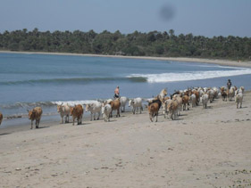It’s been a great weekend too, me and Bryan had a lovely chilled out day at Sandele and Footsteps yesterday, the beach at Sandele was practically deserted apart from a herd of huge cows, one of which got fed up walking with its friends and just turned round and starting heading back in the complete opposite direction. The cowherder didn’t seem bothered when I pointed this out to him so we stopped worrying about it. We ordered a diet coke from the girl that came to ask us for drinks, she brought 2 bottles back and for a moment we didn’t think she’d brought a bottle opener. When Bryan asked for it, she lifted her skirt up and we were both a little shocked and confused…..she was actually picking sticky buds out of her skirt due to having taken a short cut through the undergrowth to get to us and they were all scratching her legs. She’d already put the bottle opener down for us but we just hadn’t noticed!