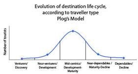 According to Stanley Plog, various tourist personality types are associated with phases in a destination life cycle because the type of tourist who visits a region indicates the area’s level of development, and in some ways determines its life cycle.