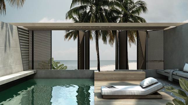 Amenities will include a secluded spa with fitness facilities; a yoga pavilion with views to the horizon; a swimming platform at the end of a natural lava rock pier as well as a beachside all-day restaurant and bar serving high-quality food, including local specialities.