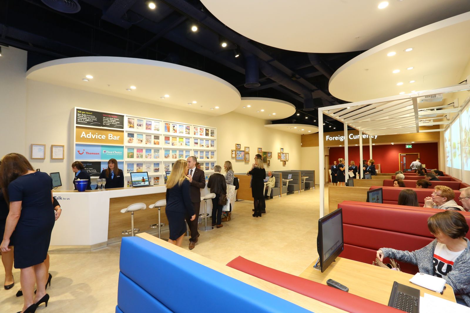The store is zoned with specially designed areas for customers to browse for holidays on their own mobile devices or to use interactive screens.