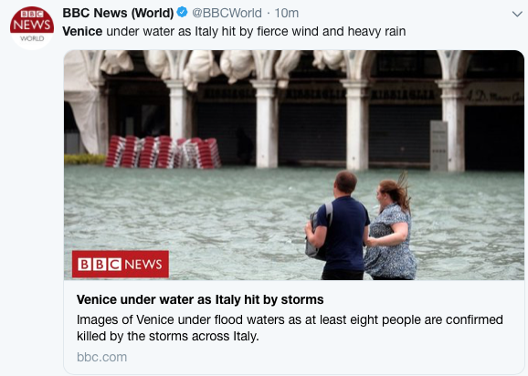 Three-quarters of Venice under water as Italy hit by high winds and heavy rain