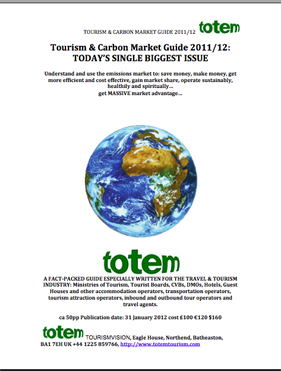 The situation, the forecast and the opportunities are outlined in the new 60page TotemTourism Tourism and Carbon Market Report 2011/2012. Editor Abby Aron, Managing Editor Publisher Valere Tjolle price UK£100