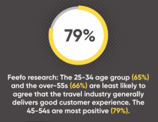 Research by review company Feefo found that only 54% of 16 to 24 years olds had a positive experience booking their holiday and the 25 to 34 year olds and the over 55s were the age groups least likely to agree that the industry delivers a good service.