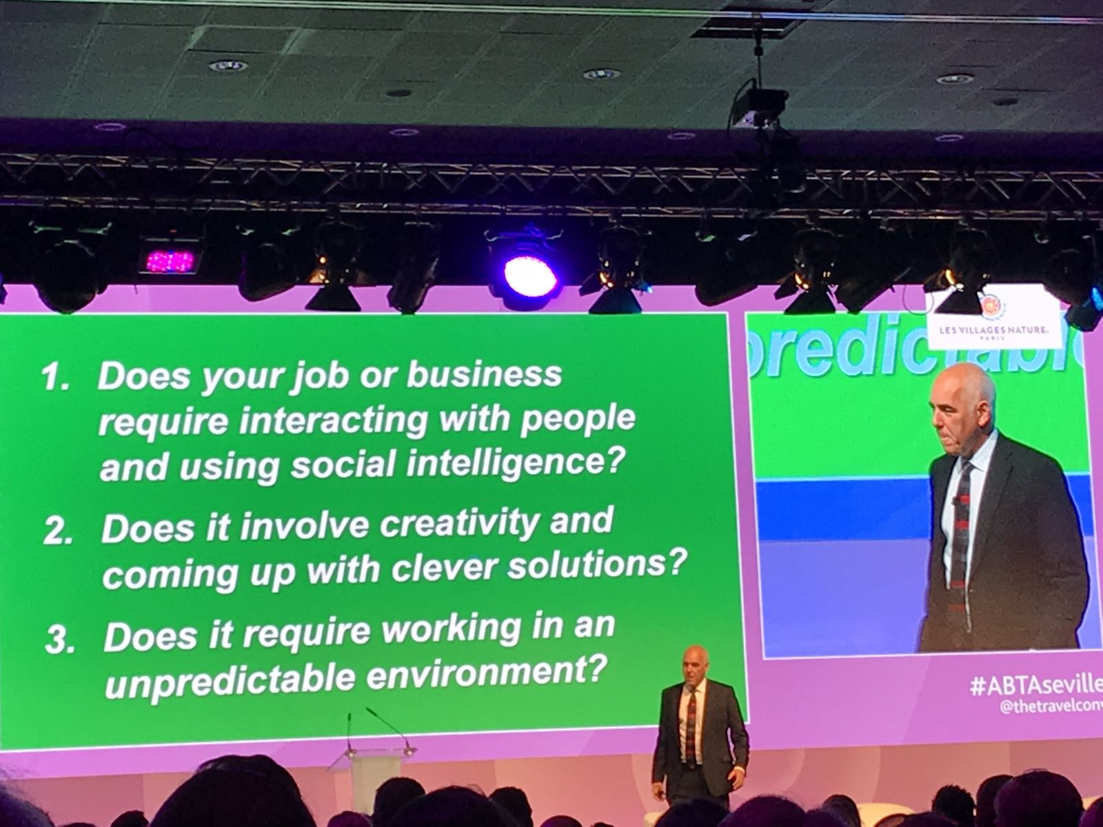 Travel industry jobs are under threat from automation unless employees prove themselves to be innovative, creative and enterprising, Dr Paul Redmond told delegates to this year’s ABTA Convention.