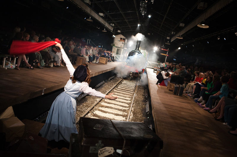The play is staged at a specially constructed theatre at the former Eurostar terminal at London Waterloo, allowing a real steam train to steal the show when it chuffs into centre stage.