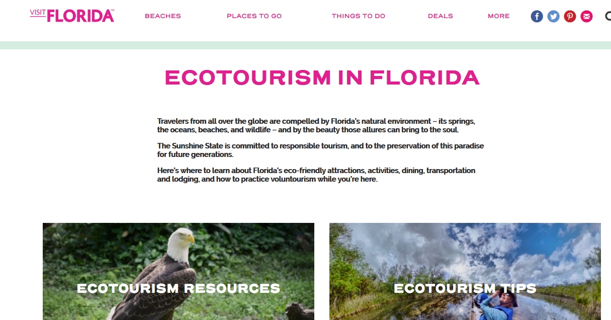 Visit Florida has added an eco-friendly travel hub to its website to provide a one-stop information resource for more sustainable travel options throughout the state.