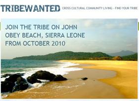 The new project will be based on John Obey Beach in Sierra Leone, West Africa, and tribewanted.com and Kevin McPhillips Travel Tribewanted’s travel partner, are offering the chance for one person to win a free place to become a tribe member.