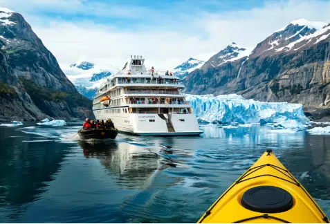 Signature expeditions allow for kayaking alongside icebergs or cruising by Zodiac.