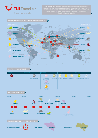 TUI has produced an infographic today to show the trends, similarities and differences across its markets for the winter season, showing top holiday destinations, average length of stay and most popular time to go away.