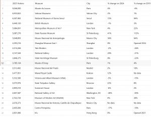 Source: The Art Newspaper, annual visitor-numbers survey 2025