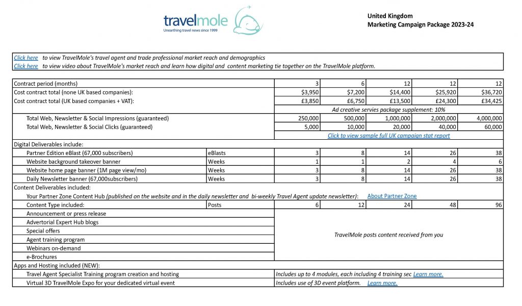 This offer includes a free-of-charge subscription to TravelMole’s Partner Zone (PZ) Content Platform.