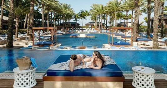 Bask in our tropical sunshine in this perfect oasis, tucked away in a tranquil spot. Choose a private cabana, lounger or chair, and swim over to the bar when you're ready for refreshments. Stroll to the nearby stingray lagoon and watch sharks, barracudas, and other exotic fish swim by in the underwater predator tunnel.
