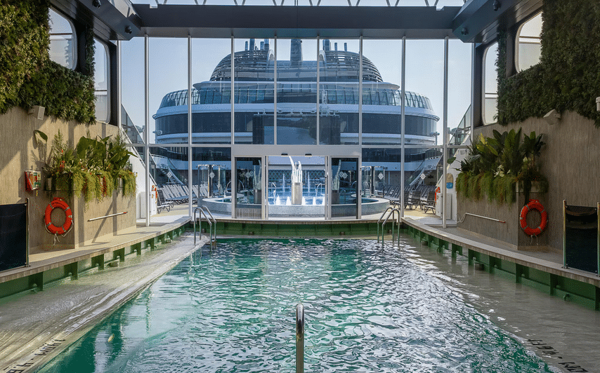 The glam-up isn’t just for Scarlet’s interiors. On deck, VIP cabanas flanked by breezy white curtains and luxe daybeds overlooking the Aquatic Club will offer a front-row view for A-listers to see and be seen or by anyone wanting to treat themselves. The six bookable cabanas can be reserved individually or connected for larger group celebrations.